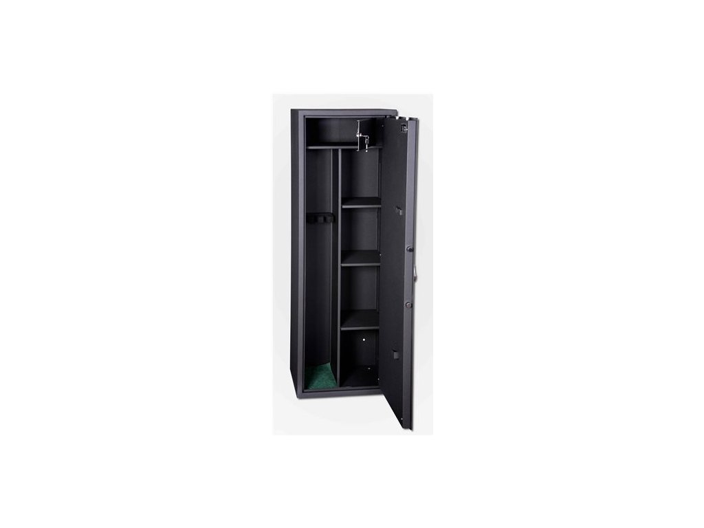 Skříň je konstruovaná speciálně pro uložení až 3 ks dlouhých zbraní s uzamykatelnou schránku na střelivo. Vnitřní výbavu doplňuje ještě měkká, avšak dostatečně pevná opěrka, která zbraně spolehlivě fixuje, aniž by byly časem vkládáním a vyjímání z trezoru nějak poškozeny, poškrábány. Opěrka je zároveň dostatečně flexibilní, aby se přizpůsobila různým typům zbraní, ať už těm objemnějším nebo i subtilnějším. Vnitřní uspořádání skříně doplňují 3 police a ve dveřích jsou držáky pro příslušenství k údržbě zbraní jako jsou například vytěráky.